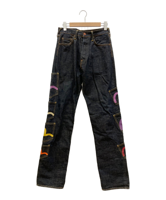 [Pre-owned] EVISU Mennie Pocket Denim Denim Pants Seagull Paint Warning