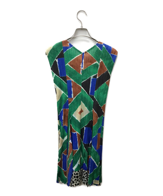 주름 Pleats Please Watercolor Print Pleated Sleeveless 드레스 / 패턴 pp51-jh642