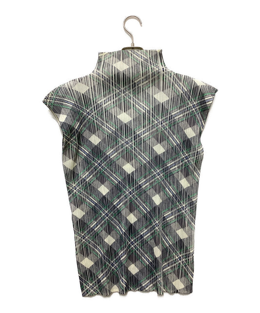 [Pre-owned] PLEATS PLEASE Bias Check High Neck Pleated Sleeveless Cut and Sewn PP52-JK603