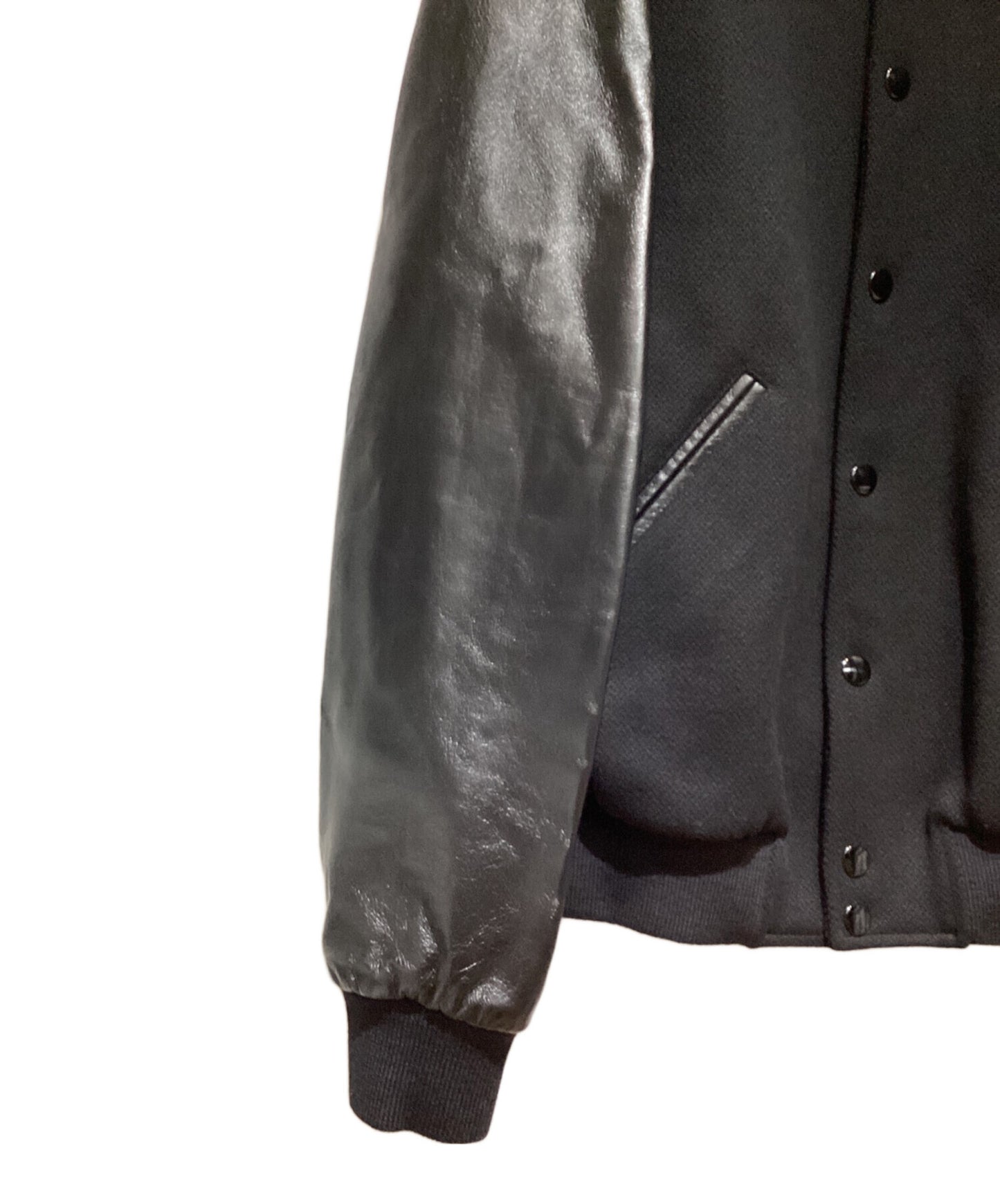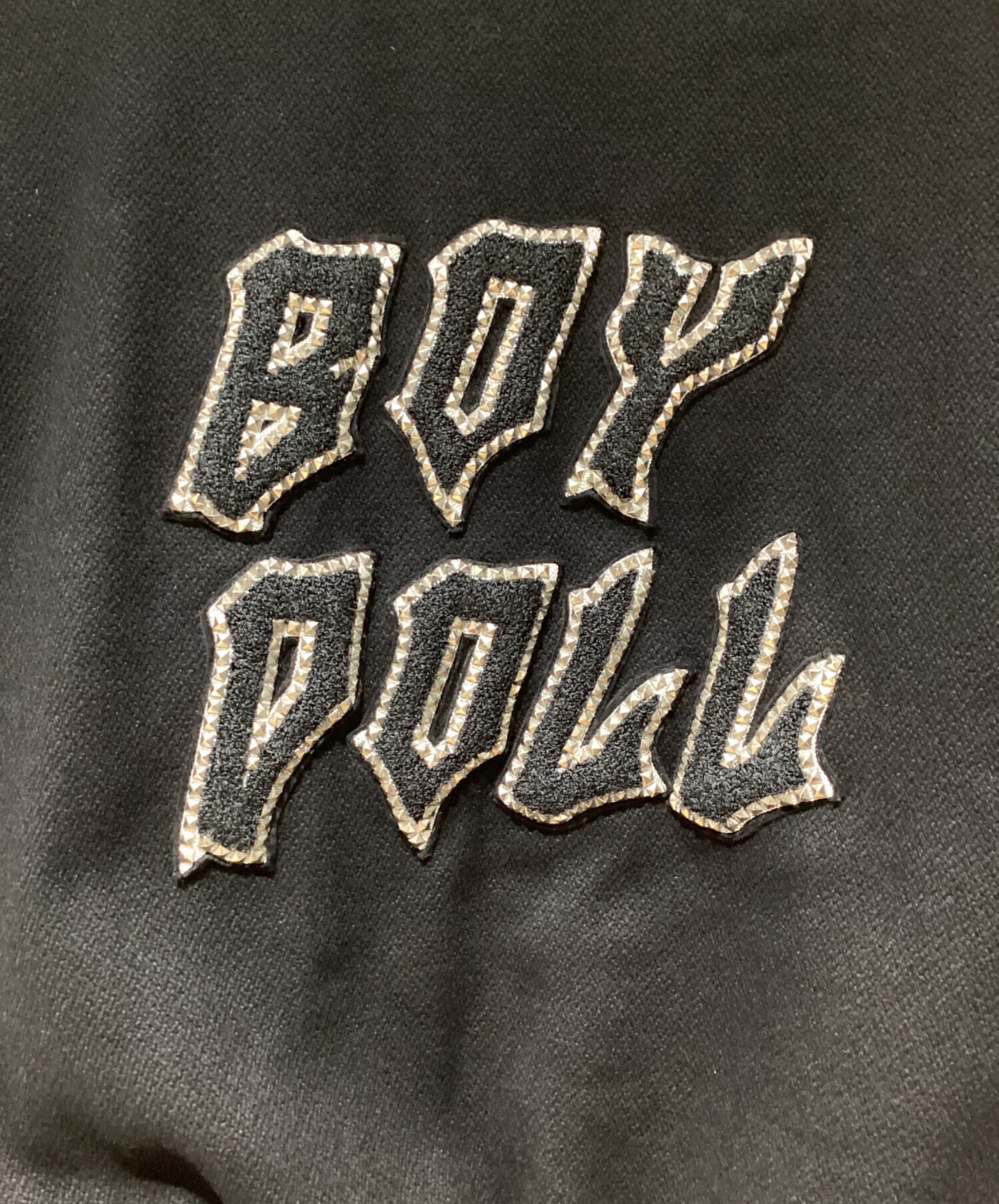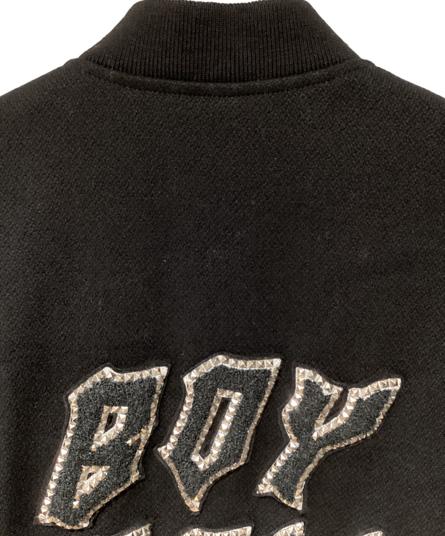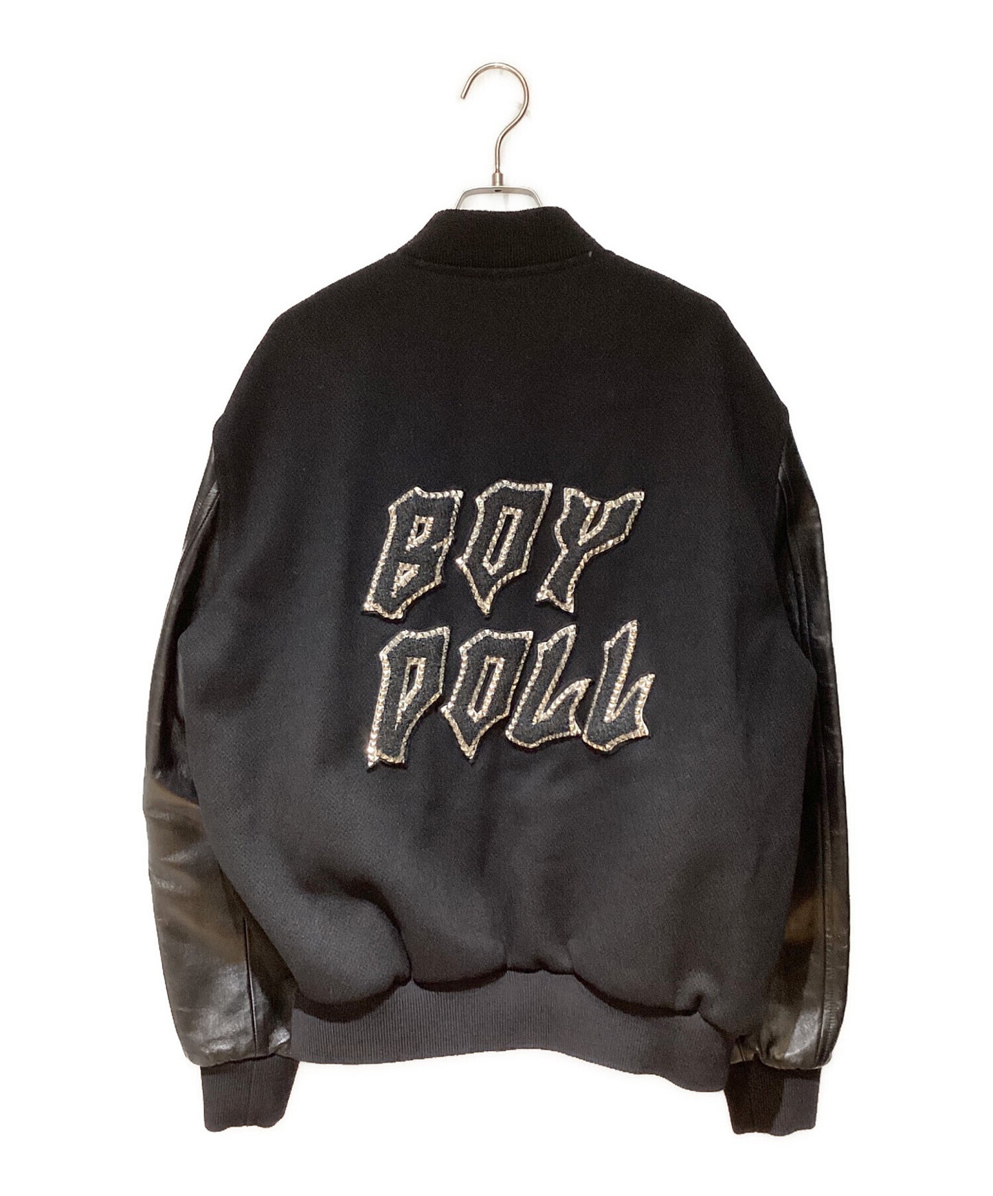 | Comment | This teddy jacket is designed with the "BOY DOLL" studded logo that expresses androgyny and genderless spirit. The stadium-jacket-based body unified in black has a beautiful contrast between wool and leather, and the ribbing is well effective, making it an excellent cold-weather wear. |