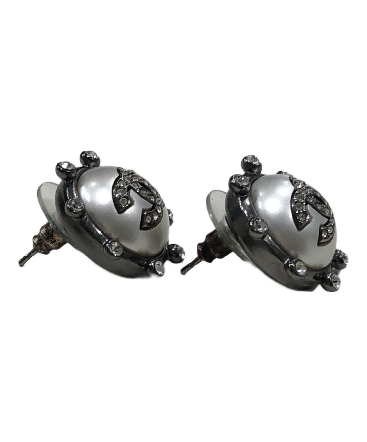 [Pre-owned] CHANEL Coco Mark and Rhinestone Earrings A21A
