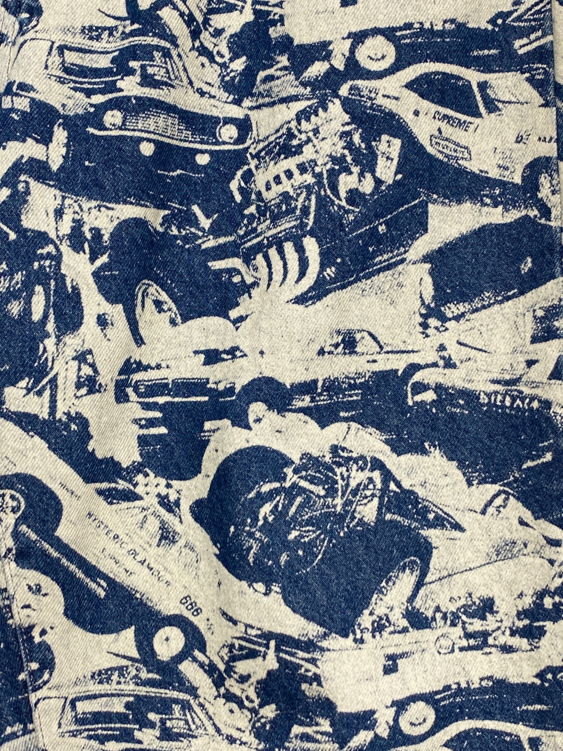| Comment | This is a collaboration item between Supreme and Hysteric Glamour. These 13oz denim pants are printed with vintage cars all over. Featuring bold graphics and a loose baggy silhouette, this is a piece that will enhance your individuality. |