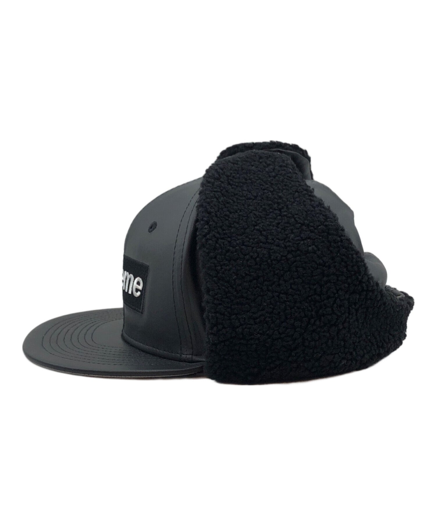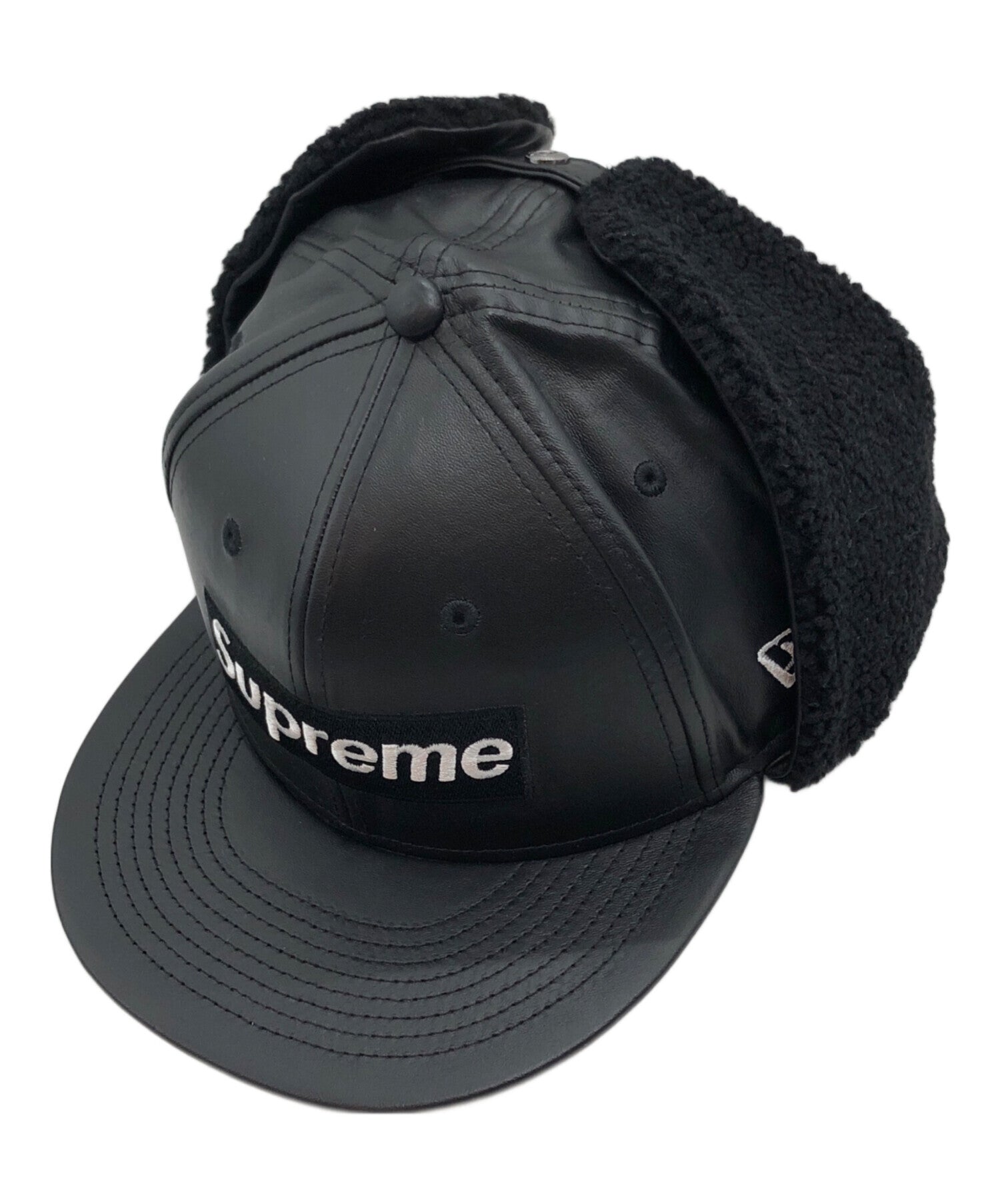 [Pre-owned] SUPREME LEATHER EARFLAP BOX LOGO NEW ERA