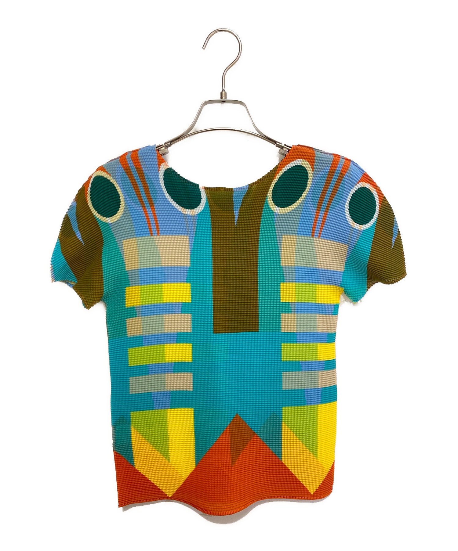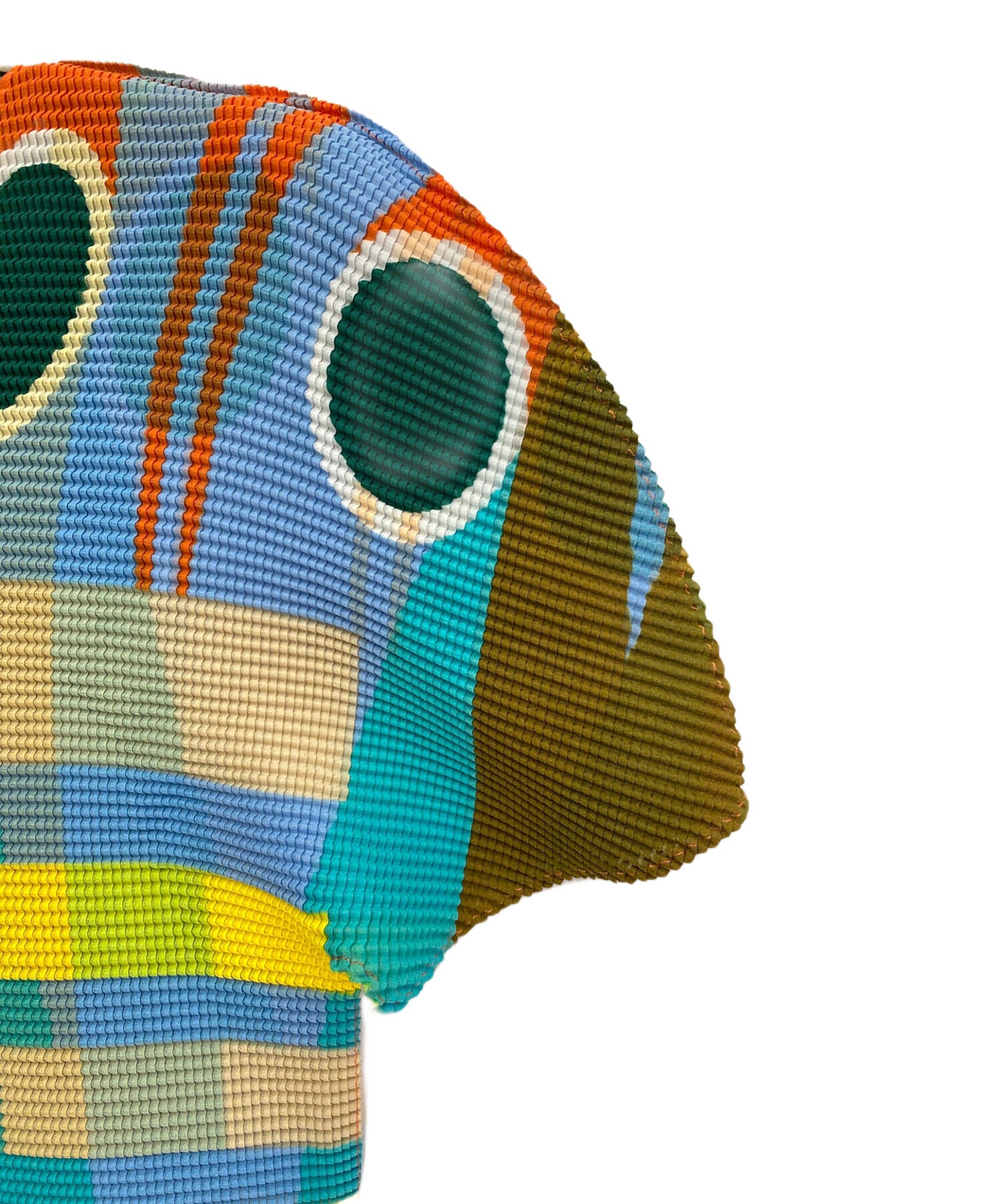 | Comment | This round-neck cut and sewn garment features a colorful printed design of circles and shapes. It is made of an uneven pleated fabric that stretches both vertically and horizontally. The silhouette of the rounded shoulders is distinctive. |