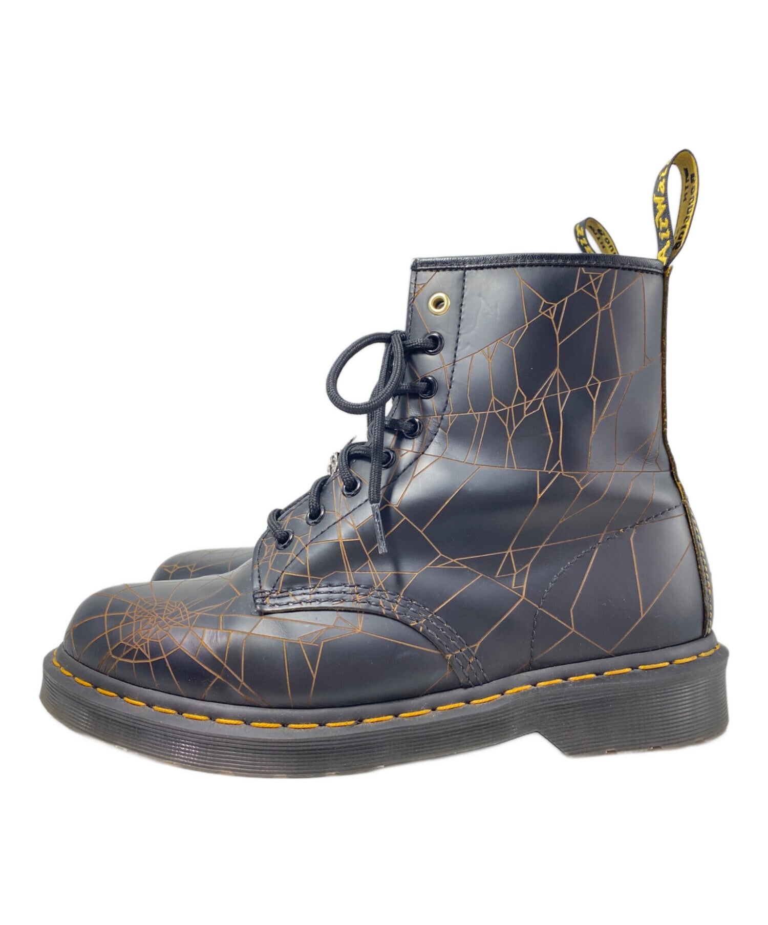 | Comment | These spider web boots were designed in collaboration with Dr. Martens and Yohji Yamamoto pour homme to commemorate the 60th anniversary of the 8-hole boot. The spider web pattern is expressed throughout the boot with a laser processing print. With Yohji Yamamoto's signature logo on the shoe tongue and a spider motif attached to the laces, this is a one-of-a-kind item that is both bold and delicate. |
