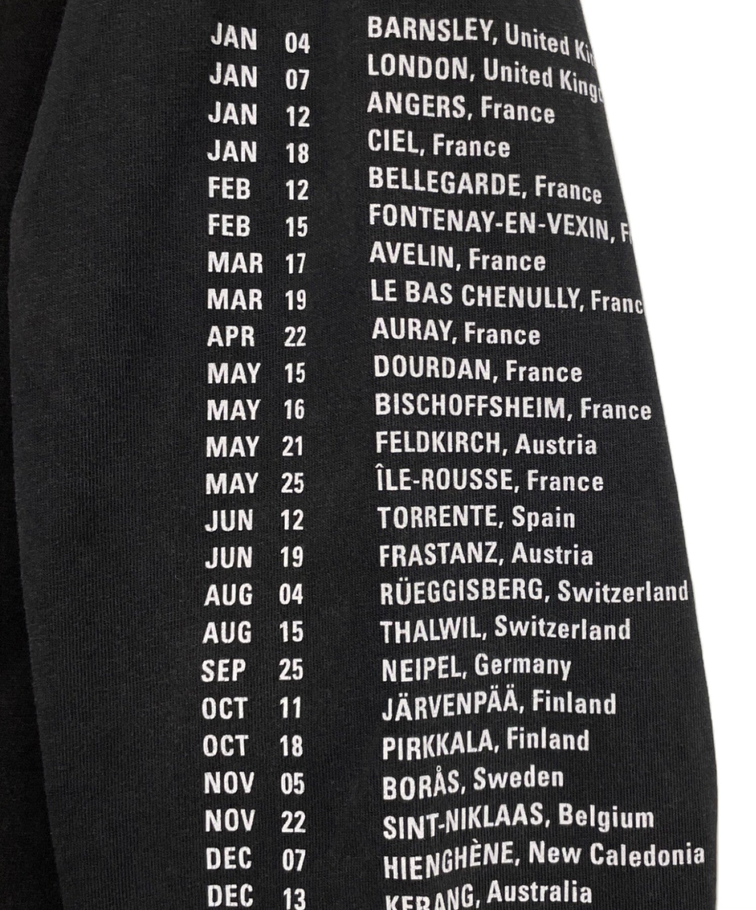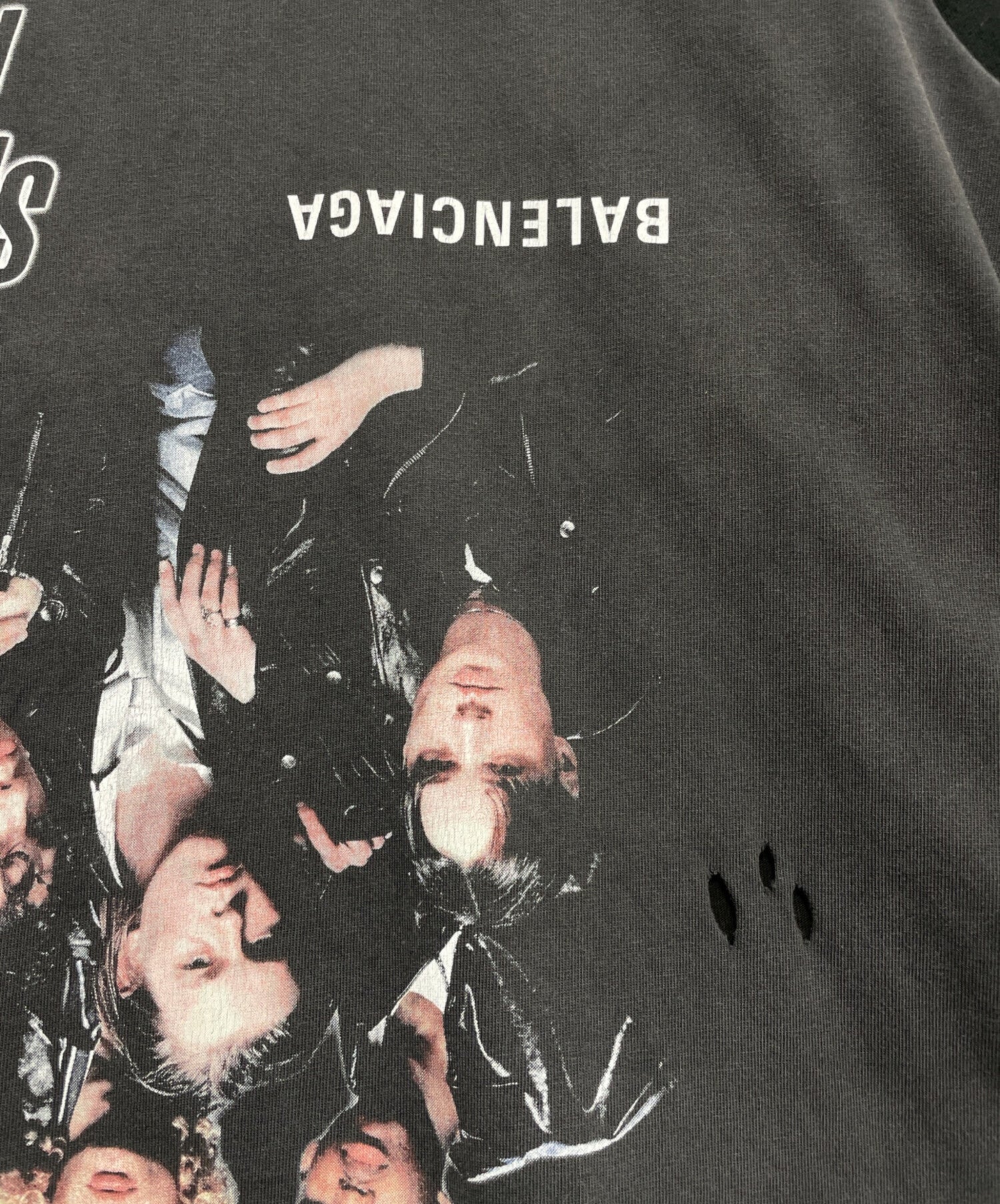 | Comment | First introduced in the 18AW collection, this "Speedhunter" long sleeve sleeve cut and sew is based on a fictional band. It features an upside-down design. It is also daringly damaged in places. |