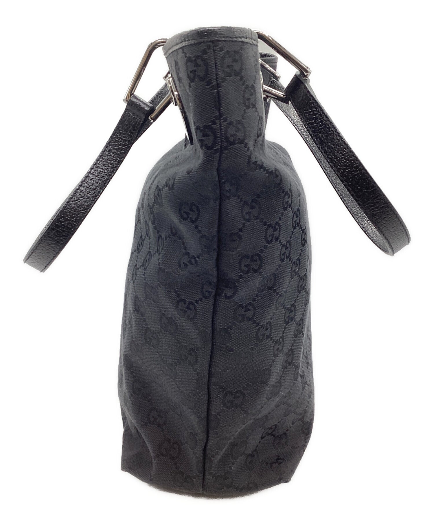 | Comment | GUCCI GG canvas tote bag Black GG pattern leather with silver hardware |