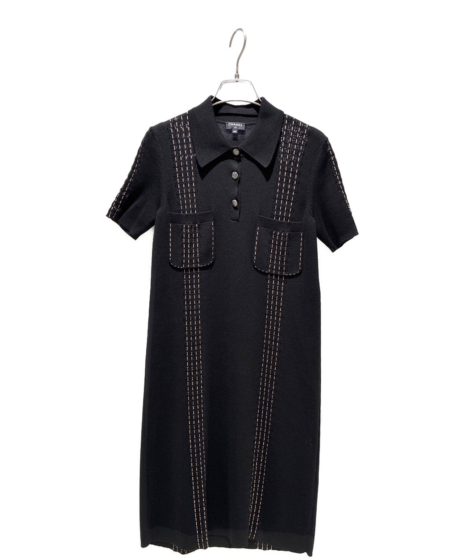 | Comment | The stitch design and gunmetal buttons give this CHANEL knit dress an elegant look. It is made of high quality cotton, and the fabric is smooth and comfortable to wear. The sophisticated silhouette gives you an elegant impression just by wearing it. |